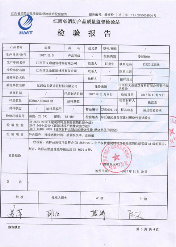 巖棉芯 檢測報告